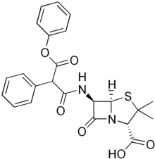 - ↑ Basker MJ, Comber KR, Sutherland R, Valler GH (1977). "Carfecillin: antibacterial activity in vitro and in vivo". Chemotherapy. 23 (6): 424–35. doi:10.1159/000222012. PMID 21771.