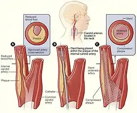 - ↑ Bonati, LH; Lyrer, P; Ederle, J; Featherstone, R; Brown, MM (12 September 2012). "Percutaneous transluminal balloon angioplasty and stenting for carotid artery stenosis". The Cochrane Database of Systematic Reviews (9): CD000515. doi:10.1002/14651858.CD000515.pub4. PMID 22972047.