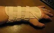 - ↑ Premoselli, S; Sioli, P; Grossi, A; Cerri, C (2006). "Neutral wrist splinting in carpal tunnel syndrome: a 3- and 6-months clinical and neurophysiologic follow-up evaluation of night-only splint therapy". Europa Medicophysica. 42 (2): 121–6. PMID 16767058.