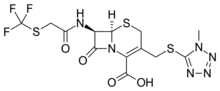 - ↑ DeMarinis RM, Boehm JC, Dunn GL, Hoover JR, Uri JV, Guarini JR, et al. (January 1977). "Semisynthetic cephalosporins. Synthesis and structure-activity relationships of analogues with 7-acyl groups derived from 2-(cyanomethylthio)acetic acid or 2-[(2,2,2-trifluoroethyl)thio]acetic acid and their sulfoxides and sulfones". Journal of Medicinal Chemistry. 20 (1): 30–5. doi:10.1021/jm00211a006. PMID 319233.