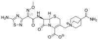 (6R,7R)-7-[[(2Z)-2-(5-Amino-1,2,4-thiadiazol-3-yl)-2-methoxyiminoacetyl]amino]-3-[(4-carbamoyl-1-azoniabicyclo[2.2.2]octan-1-yl)methyl]-8-oxo-5-thia-1-azabicyclo[4.2.0]oct-2-ene-2-carboxylate | |