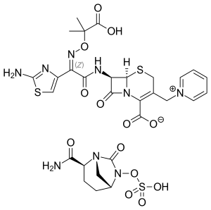 Bacterial resistance to cephalosporins is often due to bacterial production of β-lactamase enzymes that deactivate these antibiotics. Avibactam inhibits some (but not all) bacterial ß-lactamases. Also, some bacteria are resistant to cephalosporins by other mechanisms, and therefore avibactam doesn't work. Avibactam is not active against New Delhi metallo-β-lactamase 1 (NDM-1).[13] Avibactam inhibits Klebsiella pneumoniae carbapenemases (KPCs), and AmpC-type β-lactamases, which are resistant to the other clinically-available β-lactamases, tazobactam and clavulanic acid.[14]