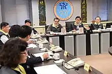 The CECC has the authority to coordinate work across government departments and enlist additional personnel during an emergency.[18] The CECC has coordinated government response measures across areas including logistics for citizens on the Diamond Princess, disinfection of public spaces around schools, and daily briefings from Minister of Health Chen Shih-chung, which are regularly aired on large news channels in Taiwan. Originally established as a level 3 government entity, the CECC was promoted to level 1 on 28 February 2020.[19]