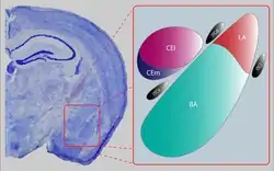- CeA "is essential for acquiring and expressing conditional fear after overtraining"[18]
