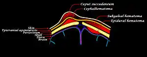 - ↑ Raines, Deborah A.; Krawiec, Conrad; Jain, Sameer (2022). "Cephalohematoma". StatPearls. StatPearls Publishing. Archived from the original on 2 August 2022. Retrieved 29 August 2022.