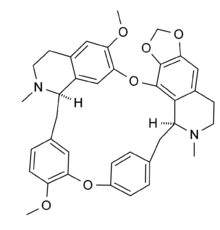- ↑ Huang H, Hu G, Wang C, Xu H, Chen X, Qian A (February 2014). "Cepharanthine, an alkaloid from Stephania cepharantha Hayata, inhibits the inflammatory response in the RAW264.7 cell and mouse models". Inflammation. 37 (1): 235–46. doi:10.1007/s10753-013-9734-8. PMID 24045962. S2CID 7186762.