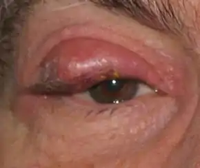 - 1 2 3 4 5 6 7 8 9 10 11 12 13 Carlisle, RT; Digiovanni, J (15 July 2015). "Differential Diagnosis of the Swollen Red Eyelid". American Family Physician. 92 (2): 106–12. PMID 26176369.