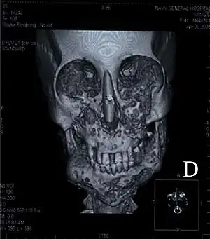 - ↑ AlAli, Ahmad M.; Dashti, Hussain; Al-Yahya, Yahya; Ali, Hamad (2021-03-01). "A report of two atypical genetic cases of cherubism: Reduced penetrance and sporadic occurrence". Journal of Oral and Maxillofacial Surgery, Medicine, and Pathology. 33 (2): 234–238. doi:10.1016/j.ajoms.2020.08.006. ISSN 2212-5558.