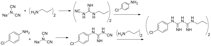 - ↑ Tanzer JM, Slee AM, Kamay BA (1977). "Structural requirements of guanide, biguanide, and bisbiguanide agents for antiplaque activity". Antimicrob. Agents Chemother. 12 (6): 721–9. doi:10.1128/aac.12.6.721. PMC 430011. PMID 931371.