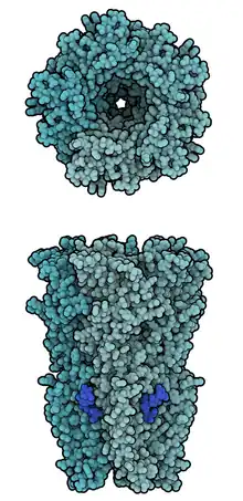: CS1 maint: multiple names: authors list (link) - 1 2 Hibbs, R. E., & Gouaux, E. (May 2011). "Principles of activation and permeation in an anion-selective Cys-loop receptor". Nature. 474 (7349): 54–60. doi:10.1038/nature10139. PMC 3160419. PMID 21572436.