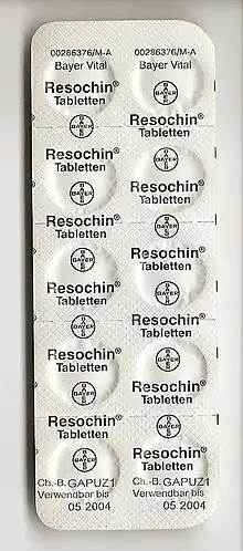 - ↑ Krafts K, Hempelmann E, Skórska-Stania A (July 2012). "From methylene blue to chloroquine: a brief review of the development of an antimalarial therapy". Parasitology Research. 111 (1): 1–6. doi:10.1007/s00436-012-2886-x. PMID 22411634.
