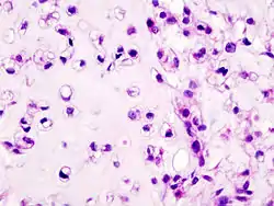 Chondrosarcoma is a canerous bone tumor of the cartilaginous type.[1][2]