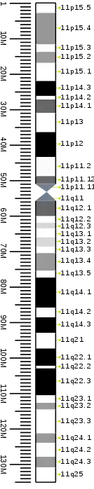 - ↑ "Statistics & Downloads for chromosome 11". HUGO Gene Nomenclature Committee. 2017-05-12. Retrieved 2017-05-19.