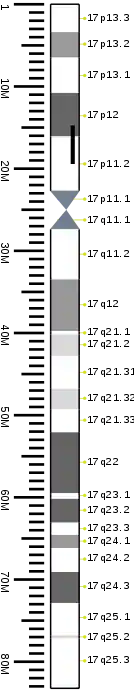 - 1 2 "Search results - 17[CHR] AND "Homo sapiens"[Organism] AND ("has ccds"[Properties] AND alive[prop]) - Gene". NCBI. CCDS Release 20 for Homo sapiens. 2016-09-08. Retrieved 2017-05-28.