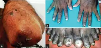 Signs and symptoms may include weight loss, fever, malaise, cough, skin and mucosal lesions, diarrhea, and peripheral neuropathy. Cardiac symptoms are also possible.[2]
