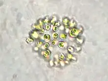 The Chroococcales (/ˌkroʊəˌkɒˈkeɪliːz/[2]) are an order of cyanobacteria in some classifications which includes the harmful algal bloom Microcystis aeruginosa.[3] Molecular data indicate that Chroococcales may be polyphyletic, meaning its members may not all belong to the same clade or have the same common ancestor.[1]