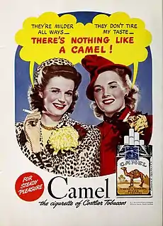 A 1942 ad encourages women to smoke Camel brand cigarettes.