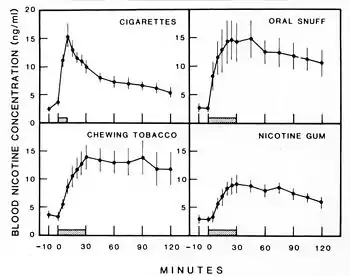 specified (help) - ↑ Ma C, Liu Y, Neumann S, Gao X (2017). "Nicotine from cigarette smoking and diet and Parkinson disease: a review". Translational Neurodegeneration. 6: 18. doi:10.1186/s40035-017-0090-8. PMC 5494127. PMID 28680589.