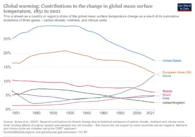 - ↑ Romanello, Marina; McGushin, Alice; Di Napoli, Claudia; Drummond, Paul; Hughes, Nick; Jamart, Louis; Kennard, Harry; Lampard, Pete; Solano Rodriguez, Baltazar; Arnell, Nigel; Ayeb-Karlsson, Sonja; Belesova, Kristine; Cai, Wenjia; Campbell-Lendrum, Diarmid; Capstick, Stuart; Chambers, Jonathan; Chu, Lingzhi; Ciampi, Luisa; Dalin, Carole; Dasandi, Niheer; Dasgupta, Shouro; Davies, Michael; Dominguez-Salas, Paula; Dubrow, Robert; Ebi, Kristie L; Eckelman, Matthew; Ekins, Paul; Escobar, Luis E; Georgeson, Lucien; Grace, Delia; Graham, Hilary; Gunther, Samuel H; Hartinger, Stella; He, Kehan; Heaviside, Clare; Hess, Jeremy; Hsu, Shih-Che; Jankin, Slava; Jimenez, Marcia P; Kelman, Ilan; et al. (October 2021). "The 2021 report of the Lancet Countdown on health and climate change: code red for a healthy future" (PDF). The Lancet. 398 (10311): 1619–1662. doi:10.1016/S0140-6736(21)01787-6. hdl:10278/3746207. PMID 34687662. S2CID 239046862. Archived (PDF) from the original on 2023-04-07. Retrieved 2023-05-17.
