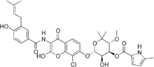 - ↑ Heide L (2009). "Genetic engineering of antibiotic biosynthesis for the generation of new aminocoumarins". Biotechnology Advances. 27 (6): 1006–1014. doi:10.1016/j.biotechadv.2009.05.017. PMID 19463934.