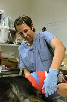 It is used both on humans and animals. For animal use, it is marketed under a variety of trade names such as "Vetrap" by 3M. It is commonly used on horses and other animals because it will not stick to hair so it is easily removed.[3][4][5]