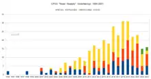 Chart showing the CPSO's use of "never reapply" undertakings from 1994 onwards