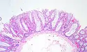 - Micrograph of a Peutz–Jeghers colonic polyp – a type of hamartomatous polyp. H&E stain.