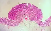 - Micrograph of a villous adenoma. These polyps are considered to have a high risk of malignant transformation. H&E stain.