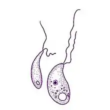 These are small (< 20 μm in diameter) flagellated protists. The life cycle of consists of two main stages: flagellated trophozoites and cysts, which are the reproductive stage in the life cycle.