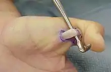- ↑ Wang, H. C.; Lin, G. T. (2005). "Retrospective study of open versus percutaneous surgery for trigger thumb in children". Plastic and Reconstructive Surgery. 115 (7): 1963–1970, discussion 1970–2. doi:10.1097/01.PRS.0000165068.57709.4A. PMID 15923844.