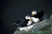 Corniculate, an Anglicisation of the Latin diminutives corniculata, corniculatum, and corniculatus, describes an object possessing hornlike extensions.[1] The root is Latin cornu = "horn". The term is used to describe the shape of the corniculate cartilages of the larynx. The horned puffin (Fratercula corniculata) is named for its distinctive horn-like coloration. Likewise Oxalis corniculata (creeping woodsorrel) is named for its two erect capsules, which resemble little horns,[2][3] and the bird's-foot trefoil Lotus corniculatus[4] and goat's horn mangrove Aegiceras corniculatum[5] are named for their horn-shaped fruits.