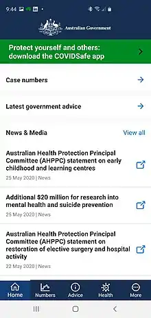 - ↑ "Coronavirus Australia app". Australian Government Department of Health and Aged Care. 26 August 2022. Retrieved 26 August 2022.