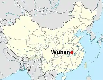 SARS-CoV-2 is a virus closely related to bat coronaviruses,[30] pangolin coronaviruses,[31][32] and SARS-CoV.[33] The first known outbreak (the 2019-2020 COVID-19 outbreak in mainland China) started in Wuhan, Hubei, China, in November 2019. Many early cases were linked to people who had visited the Huanan Seafood Wholesale Market there,[34][35][36] but it is possible that human-to-human transmission began earlier.[37][38]