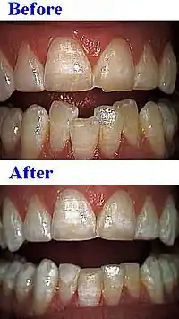 - ↑ GRAUER D, HEYMANN GC, SWIFT EJ Jr (2012). "Clinical Management of Tooth Size Discrepancies". Journal of Esthetic and Restorative Dentistry. 24 (3): 155–159. doi:10.1111/j.1708-8240.2012.00520.x. PMID 22691075.