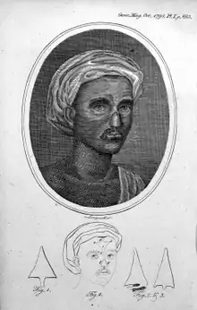 British physicians travelled to India to see rhinoplasties being performed by Indian methods.[15] Reports on Indian rhinoplasty performed by a Kumhar (potter) vaidya were published in the Gentleman's Magazine by 1794.[15] Joseph Constantine Carpue spent 20 years in India studying local plastic surgery methods.[15] Carpue was able to perform the first major surgery in the Western world in the year 1815.[16] Instruments described in the Sushruta Samhita were further modified in the Western world.[16]