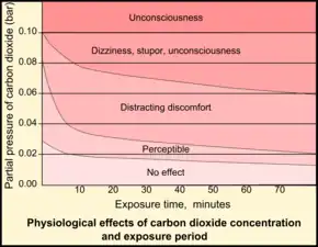 Relation of physiological effects to carbon dioxide concentration and exposure period.[5]