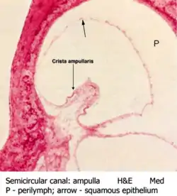 Semicircular canal: ampulla at medium magnification with a hemotoxylin & eosin stain