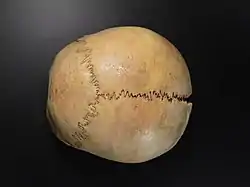 The sagittal vault's morphology, which is the area that joins the two parietal bones together to make up the structure of the crown, has remained the same for archaic and modern human species. The cartilage embedded within the skull plays a major role in the changes of the crown.[26] The cartilage evident within the cranium were an essential part in defending the central nervous system, however, over time the cartilage began to shape the crown by a process known as endochondral ossification. This process involves the replacement of grown cartilage with bone to develop the bone structure of the skull.[27]