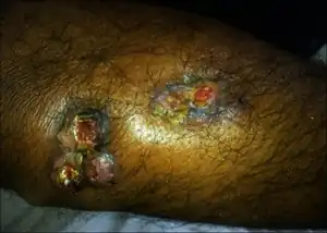 - ↑ Patil D, Siddaramappa B, Manjunathswamy BS, Pandit AM, Dastikop S, Fernandes C, Kutre S, Angolkar M (2008). "Primary cutaneous actinomycosis". International Journal of Dermatology. 47 (12): 1271–3. doi:10.1111/j.1365-4632.2008.03854.x. PMID 19126014. S2CID 205395085.