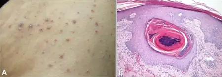 - ↑ Freedberg, et al. (2003). Fitzpatrick's Dermatology in General Medicine. (6th ed.). Chapter 57. McGraw-Hill. ISBN 0-07-138076-0.