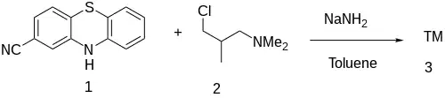 2-Cyanophenothiazine [38642-74-9] (1) 3-Chloro-2-methylpropyl(dimethyl)amine [23349-86-2] (2)