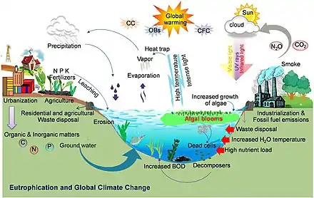 - 1 2 Vasconcelos V (2006). "Eutrophication, toxic cyanobacteria and cyanotoxins: when ecosystems cry for help" (PDF). Limnetica. 25 (1–2): 425–432. doi:10.23818/limn.25.30. S2CID 59434407. Archived from the original (PDF) on 2011-07-23. Retrieved 2011-01-26.