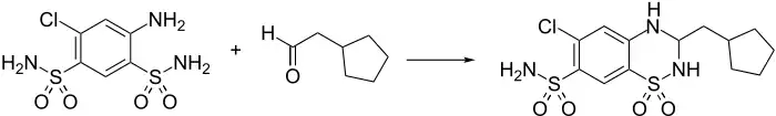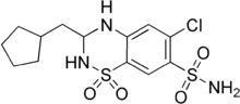 - ↑ Whitehead CW, Traverso JJ, Sullivan HR, Marshall FJ (1961). "Diuretics. V. 3,4-Dihydro-1,2,4-benzothiadiazine 1,1-Dioxides". The Journal of Organic Chemistry. 26 (8): 2814–2818. doi:10.1021/jo01066a046.
