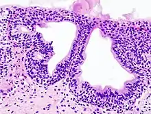 - ↑ Yi X, Lu H, Wu Y, Shen Y, Meng Q, Cheng J, Tang Y, Wu F, Ou R, Jiang S, Bai X, Xie K (October 2014). "Cystitis glandularis: A controversial premalignant lesion". Oncology Letters. 8 (4): 1662–1664. doi:10.3892/ol.2014.2360. PMC 4156188. PMID 25202387.
