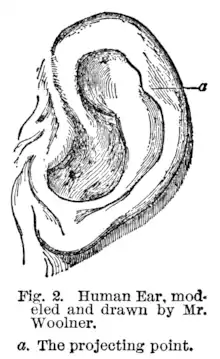 - ↑ Millard, D. Ralph; Pickard, Robert E. (1970-04-01). "Darwin's Tubercle Belongs to Woolner". Archives of Otolaryngology. 91 (4): 334–335. doi:10.1001/archotol.1970.00770040492005. ISSN 0003-9977. PMID 4909009.