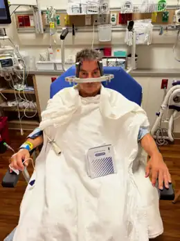 An adult male undergoing pre-op preparation for deep brain stimulation.