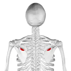 ![]() Left scapula. Posterior view. Deltoid tubercle shown in red. | |