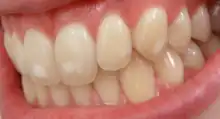 Mild fluorosis: in its usual mildest form, fluorosis appears as opaque white patches on the enamel | |