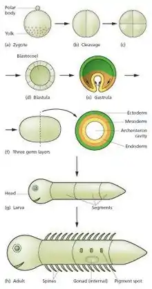 - ↑ Ettensohn CA, Sweet HC (2000). "Patterning the early sea urchin embryo". Current Topics in Developmental Biology Volume 50. Vol. 50. Academic Press. pp. 1–44. doi:10.1016/S0070-2153(00)50002-7. ISBN 9780121531508. PMID 10948448.
