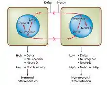 - ↑ Sprinzak D, Lakhanpal A, Lebon L, Santat LA, Fontes ME, Anderson GA, et al. (May 2010). "Cis-interactions between Notch and Delta generate mutually exclusive signalling states". Nature. 465 (7294): 86–90. Bibcode:2010Natur.465...86S. doi:10.1038/nature08959. PMC 2886601. PMID 20418862.